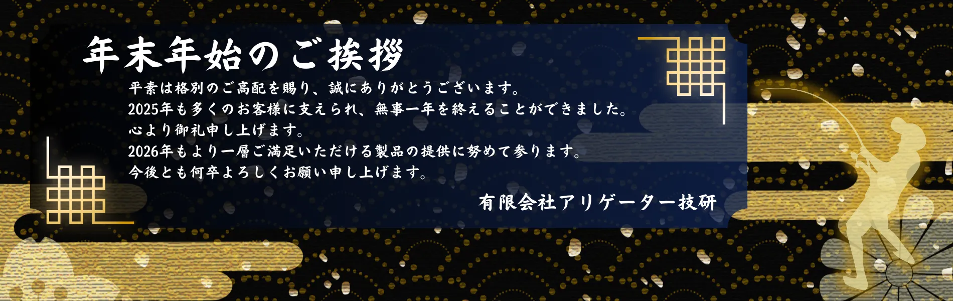- フィッシングショーOSAKA2026出展!!抽選会開催のお知らせアリゲーター技研は、2026年2月7日(土)、8日(日)の2日間開催される「フィッシングショーOSAKA202… 続きを読む: フィッシングショーOSAKA2026出展!!抽選会開催のお知らせ