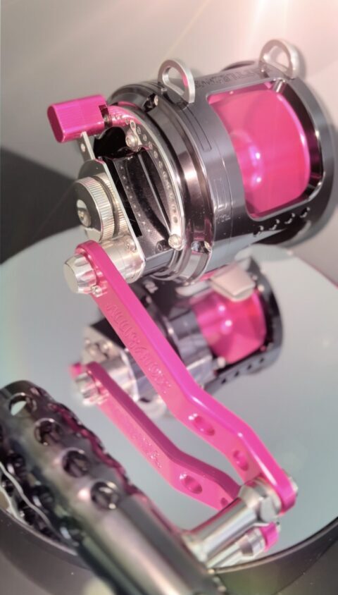 こちらは、フェス限定リールです。アルマイトで着色したBattle200GTです。ピンクの方は、初日であっという間に完売してしまいました。オレンジの方は、2日目の朝の早い時間に最後の1台が完売でした。売り切れてしまってからも、たくさんの方がお求めにいらして、嬉しくも心苦しかったです。