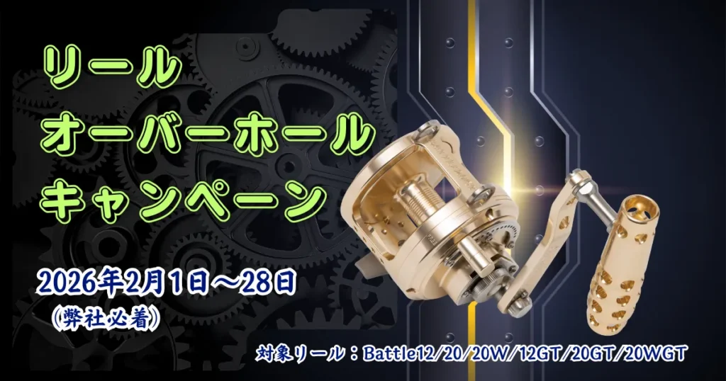 アリゲーター技研は、2026年2月1日(日)から28日(土)まで、下記の通り「リールオーバーホールキャンペーン」を実施いたします。